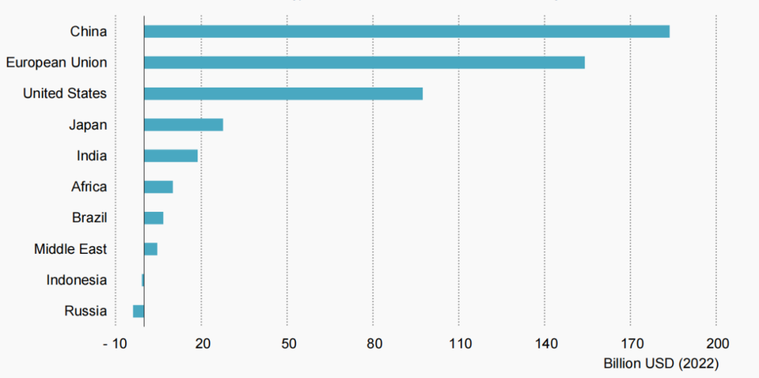 圖3 2019—2023年主要國(guó)家和地區(qū)清潔能源投資情況 (來(lái)源:IEA)
