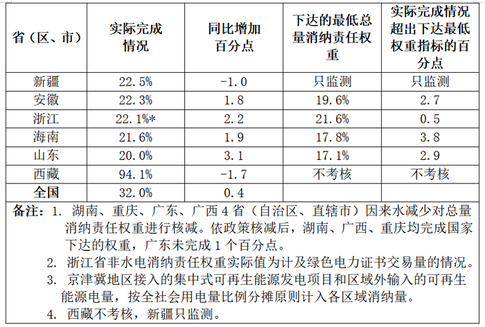 (一)可再生能源電力總量消納責任權(quán)重完成情況