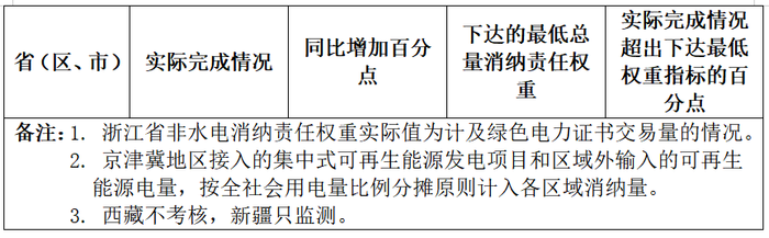 二、各省(區(qū)、市)可再生能源電力消納責任權(quán)重完成情況