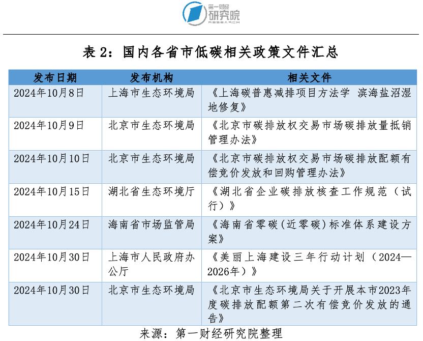 10月,全國碳市場碳價繼續(xù)上漲。政策方面,2023、2024年度發(fā)電行業(yè)配額分配方案出臺,企業(yè)獲得的實際配額量有所下降。
