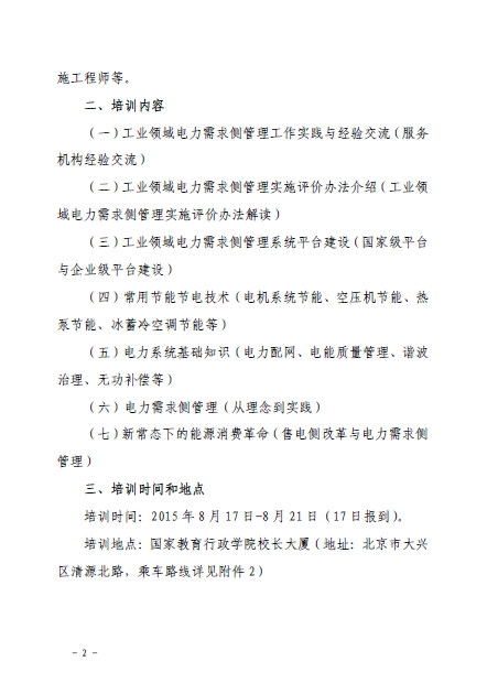 1、關(guān)于舉辦工業(yè)領(lǐng)域電力需求側(cè)管理服務(wù)機(jī)構(gòu)電能管理培訓(xùn)班通知(工電促[2015]8號)